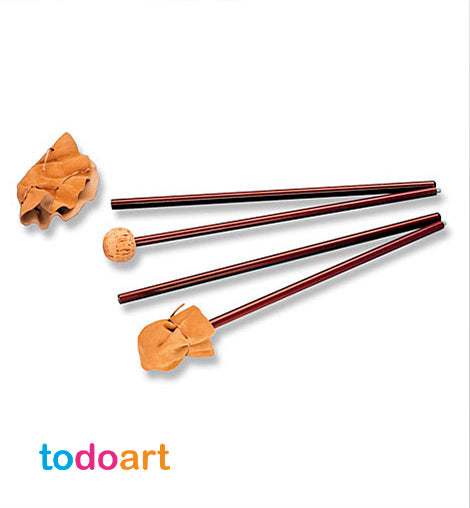 El tiento tiene bola de corcho macizo y gamuza de cuero para que no resvale ni dañe en la superficie de contacto con la tela de lienzo o la tabla .
