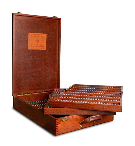 Una caja para los amantes de la pintura en pastel. Sennelier es una marca de máxima calidad, caja de madera noble con cierre de cuero, la mejor y mas grande caja de pasteles del mundo.