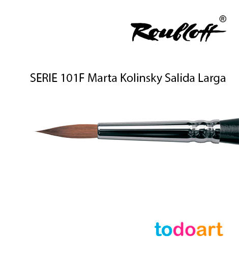 Pincel de la marca Roubloff serie 101F en Marta Kolinsky, este pincel es el mismo que tipo de pelo que la serie 1010, 1012 lo unico que cambia es el color de la virola y la forma y color del mango. La salida del pelo es mas larga que en otras series