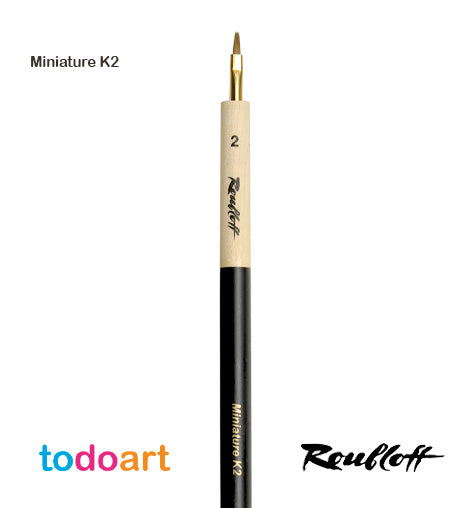 Miniatura K2 №2 - pincel plano pelo Marta kolinsky es adecuado para la aplicación de capas de pintura de base, sombreado de pinturas al óleo (incluyendo la técnica de puntos de aceite), para la técnica de pincel seco en áreas pequeñas. Este pincel está diseñado especialmente para crear modelos de banco y miniaturas histórico-militares.