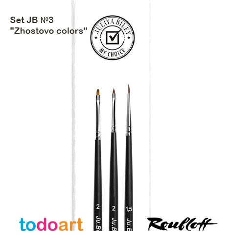 Set №3. El conjunto de cepillos especialmente seleccionados para el trabajo de acrílico en el estilo Zhostovo. Los cepillos le permiten pintar elaboradamente los pétalos de diferentes formas y tamaños y otros detalles finos.