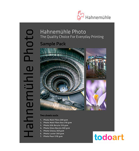 El Hahnemühle Photo Sample Pack es práctico y contiene muestras procedentes de la gama Photo. Una fórmula ideal para descubrir la gama y elegir el soporte que mejor convenga a artistas y profesionales de la fotografía.