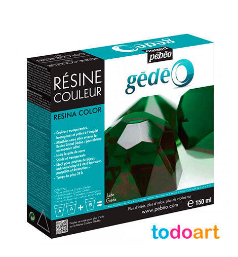Esta resina de color verde transparente fabricada por pebeo , es trasnparente e ideal para usar sobre trabajos .Este kit de 150 ml tiene dos botellas en su interior , mezclando ambas y removiendo podemos aplicar la resina sobre la superficie que queramos podemos aplizar sobre lienzos , dm , cartón , láminas , bisuteria etc