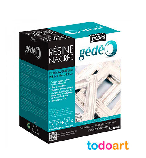 Esta resina de color Perlado nacarado fabricada por pebeo , es opaca e ideal para usar sobre trabajos .Este kit de 150 ml tiene dos botellas en su interior , mezclando ambas y removiendo podemos aplicar la resina sobre la superficie que queramos podemos aplizar sobre lienzos , dm , cartón , láminas , bisuteria etc.