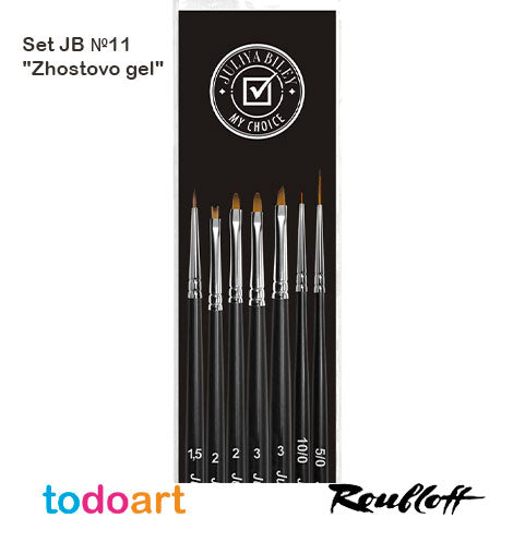 Set №11. El set está orientado a los maestros, que trabajan con gel en estilo Zhostovo. Este set contiene todos los pinceles esenciales para realizar todos los pasos de este tipo de pintura.